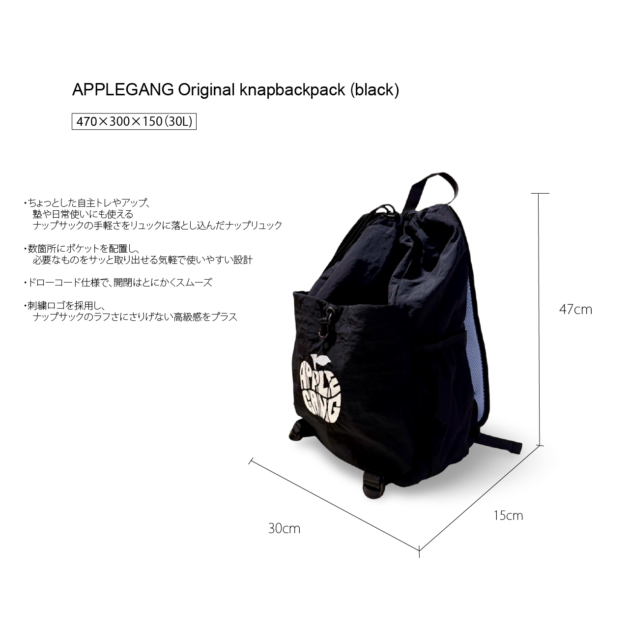 サイズ:ワンサイズ(W30 × H47× D15)